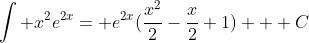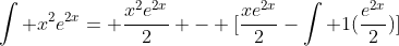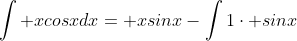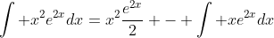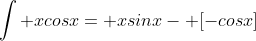 We'll have to use the integration by parts rule again to solve the last part. Now, f(x)=x but g'(x) is the same as before. When we do that, our equation looks like this: