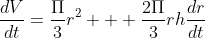 Part c said r and h were both variable. In this case, it was necessary to use the product rule. We still said that the 1/3Ï€ was a constant, so we took it out as we found the derivative of h and